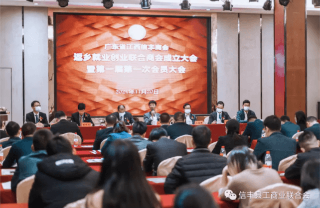 臍橙滿樹似黃金,橙香四溢飄萬里。11月20日,廣東省江西信豐商會(huì)返鄉(xiāng)就業(yè)創(chuàng)業(yè)聯(lián)合商會(huì)舉行成立大會(huì)暨第一次會(huì)員大會(huì)??h委常委、統(tǒng)戰(zhàn)部長李紹武,縣政協(xié)副主席、工商聯(lián)主席宋裕華、縣委統(tǒng)戰(zhàn)部分管日常工作的副部長李賽香,縣委統(tǒng)戰(zhàn)部副部長、縣工商聯(lián)黨組書記、常務(wù)副主席郭昌福,各縣直部門負(fù)責(zé)人、鄉(xiāng)鎮(zhèn)黨委書記,廣東省江西信豐商會(huì)會(huì)長袁勇、執(zhí)行會(huì)長黃學(xué)平、廣州分會(huì)候任會(huì)長王明富、深圳分會(huì)會(huì)長葉昌友、惠州分會(huì)會(huì)長鄒貴春、秘書長蘇有華等嘉賓、會(huì)員朋友們共計(jì)300余人先后參加揭牌儀式、成立大會(huì)和慶典晚宴系列活動(dòng)。